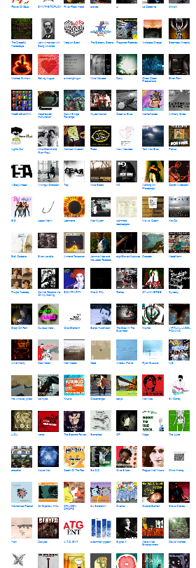 כל ריבוע כזה, קל לזהות, הוא גירסה מוקטנת של עטיפת תקליט, רובן המכריע עשויות במקצועיות ובטעם שלא כל כך מזמן היו שמורות רק ללהיטים מובטחים בחברת תקליטים גדולה. סקירה חטופה של ההיצע היא עניין מרתק, שורה של נסיונות, מוצלחים בדרך כלל, לנחש את הז'אנר על סמך שם הלהקה והתמונה המוקטנת. מעת לעת אפשר ליפול בטעות על רוק כבד מזעזע שהתחזה למשהו אחר.